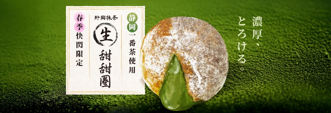 春季限定「靜岡抹茶生甜甜圈」,特別選用日本靜岡抹茶粉製作,