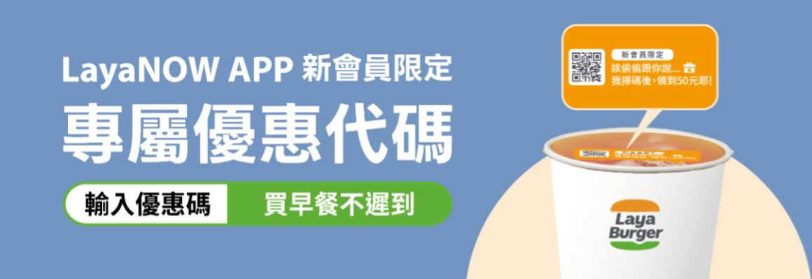 1. 現在就下載 Laya NOW ,輸入優惠代碼『買早餐不遲到』,即可領取新會員優惠券。