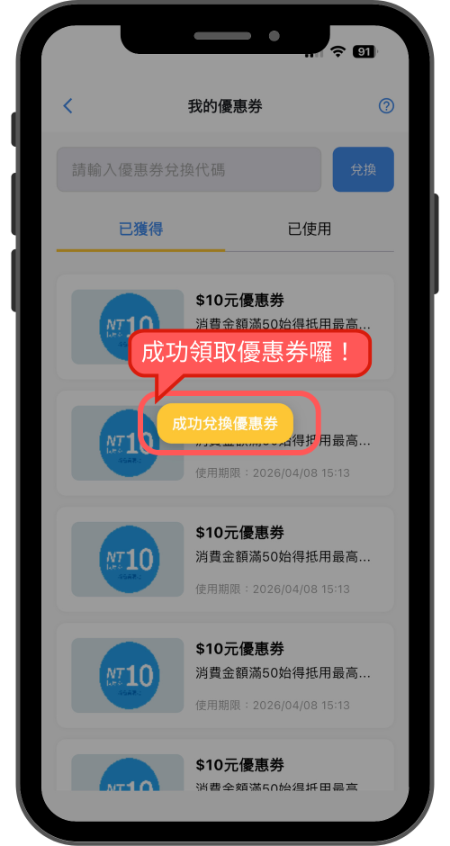 Step4:成功領取優惠券