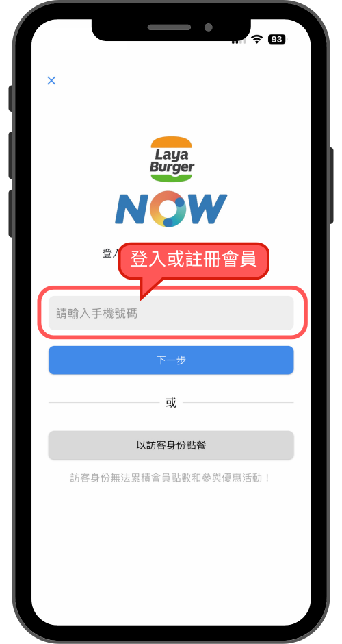 輸入『手機號碼』開始註冊或登入會員